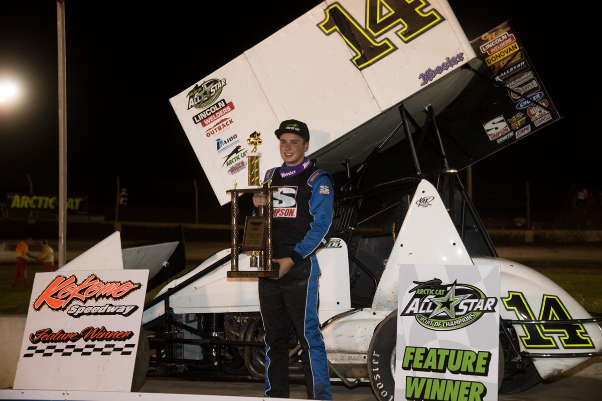 KOKOMO, IN (July 22, 2016) - For the first time in nearly ten years, the Arctic Cat All Star Circuit of Champions invaded the famed Kokomo Speedway in Kokomo, Indiana, in an attempt to tame the Hoosier State’s “Baddest Bullring” during the inaugural Dirt Classic Indiana presented by Tony Stewart. The weekend doubleheader launched officially on Friday night, July 22, with 37 Arctic Cat All Star sprint cars making the call. When the dust settled, it was recent Tony Stewart Racing hired gun Christopher Bell at the top of the heap, leading all 35 laps on the Kokomo Speedway quarter-mile to score his first ever All Star victory worth $5,000. Rico Abreu finished just behind Bell, followed by Aussie invader Jamie Veal.