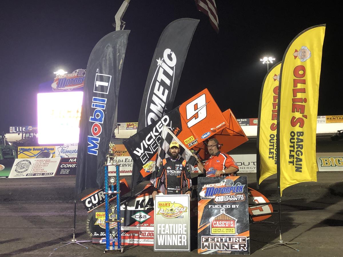 Inside Line Promotions – JACKSON, Minn. (July 26, 2019) – A late-race pass from a hard charging driver secured victory in both divisions competing on Friday night at Jackson Motorplex, which hosted Tony Stewart Night presented by C&B Operations.