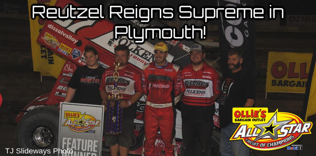 PLYMOUTH, Ind. (August 18, 2019) - After a frustrating outing one night prior that ultimately resulted in a ‘DNF’ finish, Clute, Texas’ Aaron Reutzel redeemed himself completely during his Saturday night stay at Plymouth Speedway in Plymouth, Indiana, and secured his seventh Ollie’s Bargain Outlet All Star Circuit of Champions presented by Mobil 1 victory of the 2019 season; his first since Utica-Rome Speedway in mid-July.